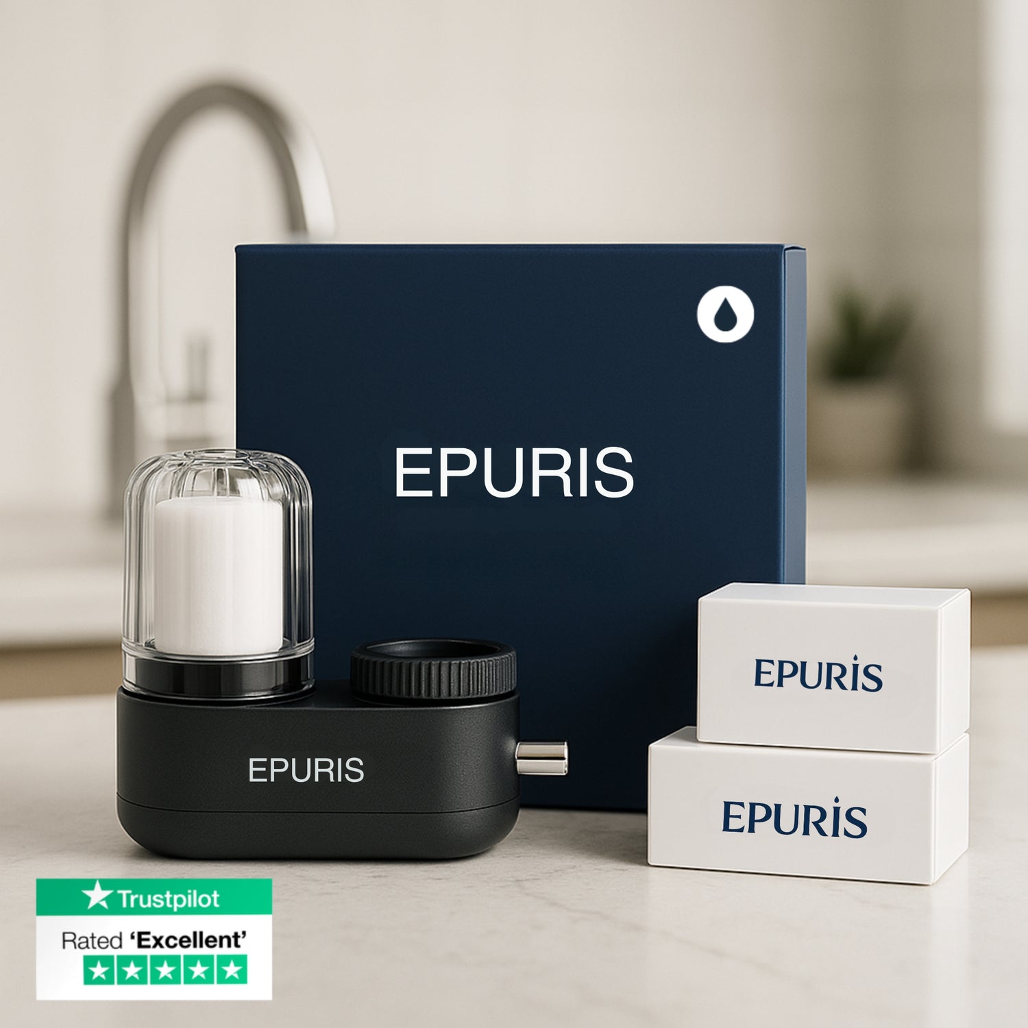 Epuris élimine le chlore, les métaux lourds, la rouille, les bactéries et les micro-particules, tout en préservant les minéraux essentiels à ta peau.